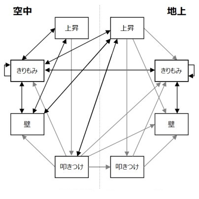 - 旋转(きりもみ):对手被击飞在空中打转;